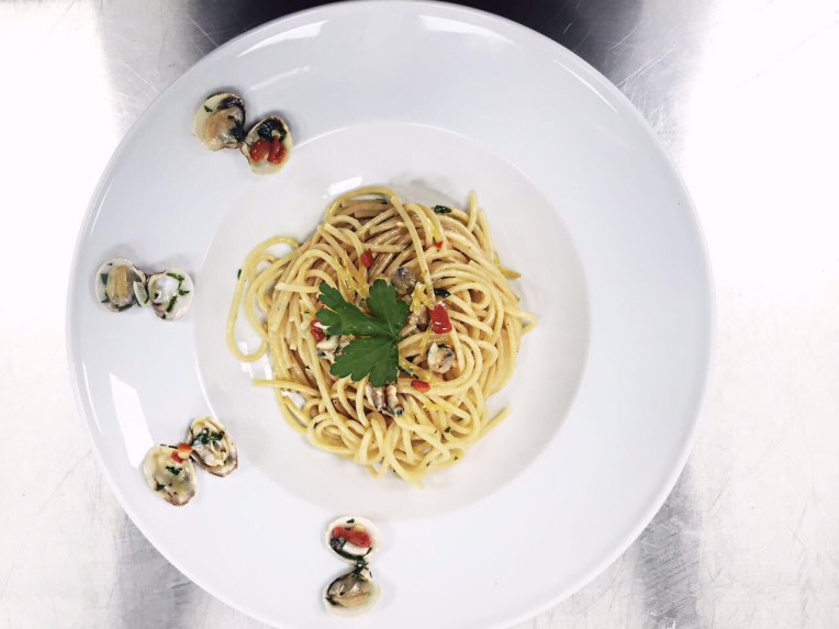 Bueno como les explico que estoy verdaderamente fascinada. Llevo una clase que se llama Food and Wine pairing class y es mi parte favorita de la semana sin duda alguna. Consiste en 1 hora de teoría sobre el vino, los distintos tipos de uva, fermentación, añejamiento, tipos distinto de barrica ya sea de roble frances que le da al vino ese sabor a tabaco o el roble americano que le da un sabor más a vainilla, entre muchas otras cosas. Despues de eso el chef prepara el platillo que vamos a cocinar para que observemos la tecnica y todos los pasos que debemos seguir en la receta y ya despues nosotros hacemos nuestra chamba. Ya al final de la clase una vez que nuestros platillos esten listos nos sirve dos copas de vinos distintos y comenzamos a degustar y aprender porque tal vino queda mejor con el platillo y porque el otro no. ¡¡¡ME ENCANTA!!!